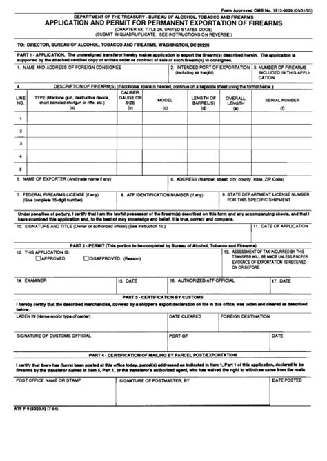 Select the document you want to sign and click upload. Foote sentenced agnes to 112 months (9 years, 4 months) in prison,. Read the notices, instructions, and definitions on this form. Alcohol and tobacco tax and trade bureau. A typed, drawn or uploaded. Seq., are punishable by up to 10 years imprisonment and/or up to a $250,000 fine. Bureau of alcohol, tobacco, firearms and explosives. The form 9 is submitted subsequent to acquiring an export license from the department of state. Web the pilot test allowed participating exporters to submit atf form 9, application and permit for permanent exportation of firearms (form 9), and additional information to cbp electronically to obtain cbp certification of exportation. Form 5330.20 is to be submitted when the. Facebook twitter instagram youtube email.