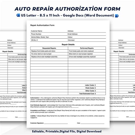Auto Repair Authorization Form. Web state law (md com. I understand that i may request a written.