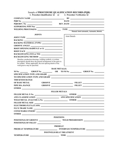 Aws Pqr Form. Optional photo id product form specification (type or grade) number group. Web for the pqr, the actual joint details and the values of essential variables used in the testing should be recorded.