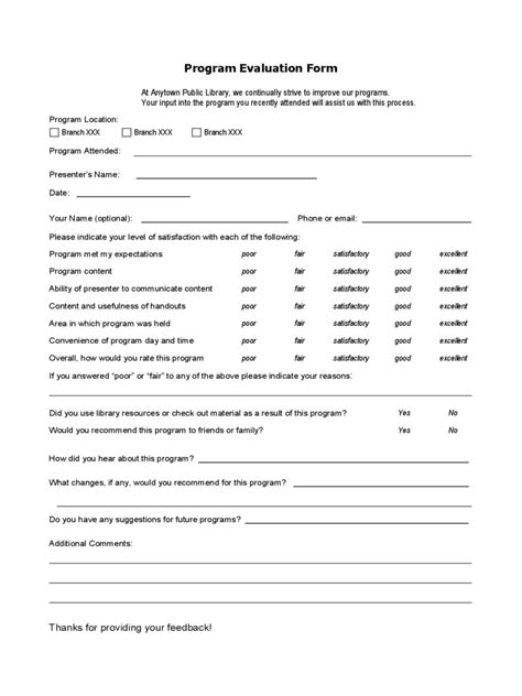 Sample Program Evaluation Form printable pdf download
