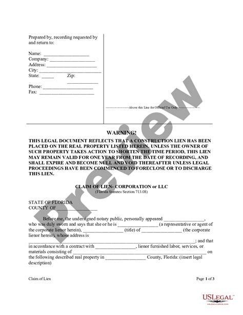 Florida Claim Of Lien Form. Rich text instant download buy now free preview description fl lien florida this is the form for filing a lien by an individual lien. For download in word format.