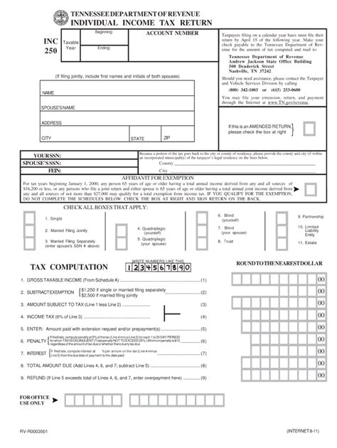 2011 Form TN DoR INC 250 Fill Online, Printable, Fillable, Blank
