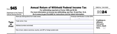 Form 945 Annual Return of Withheld Federal Tax Form (2015