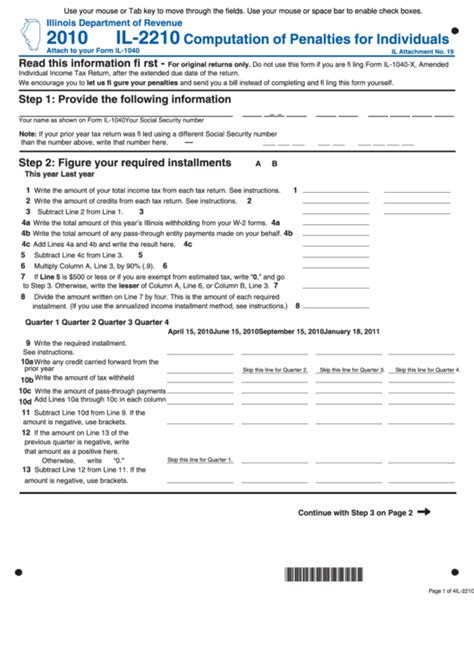 Form Il 2210. Underpayment of estimated tax by individuals, estates, and trusts. Department of the treasury internal revenue service.