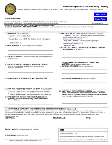 Oregon Articles of Organization Limited Liability Company