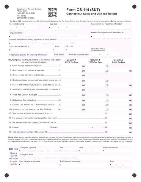 If you are fi ling an amended return, check the box on the. Both taxable and nontaxable sales must be. Sales and use tax return:. This information is for state of connecticut. 07/11) for period ending connecticut tax. Web businesses must complete and file form os‑114 to report all sales activity in connecticut, even if no sales were made or no tax is due. Start completing the fillable fields. Save or instantly send your ready documents. Annual filers are required to electronically. If you are fi ling an amended return, check the box on the. Use get form or simply click on the template preview to open it in the editor.