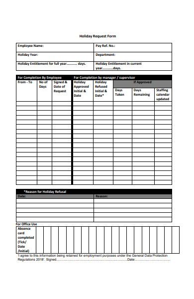 FREE 11+ Holiday Request Forms in PDF MS Word Excel