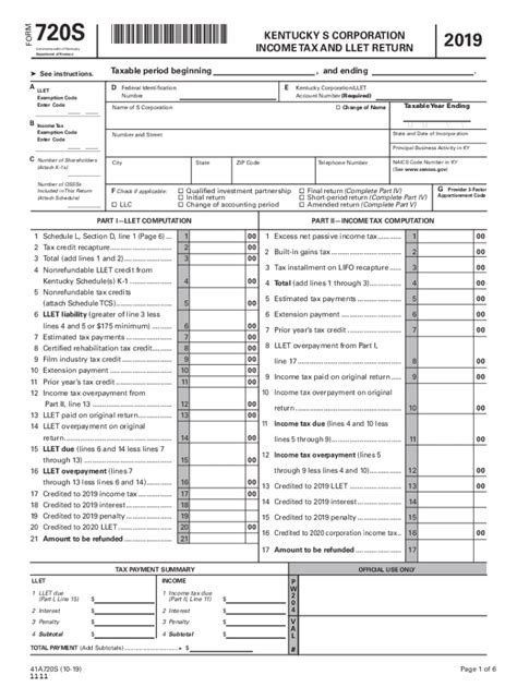 Form 720 Kentucky Corporation Tax And Llet Return 2013
