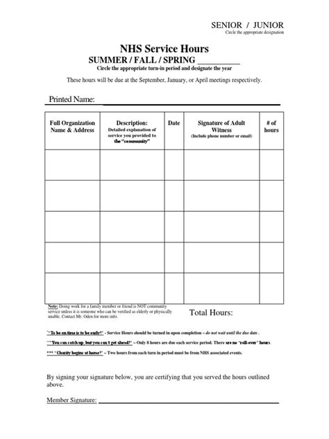Nhs Service Hours Form. Try scribd free for 30 days. First semester service hours can be recorded from.