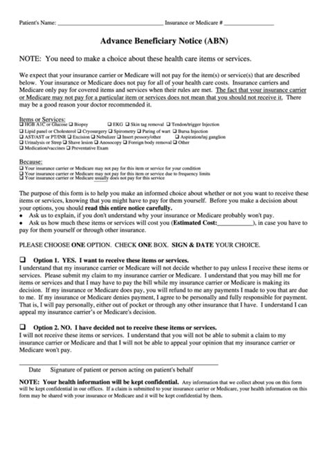Notifiers are encouraged to populate all of the blank d. Web what is a medicare abn form? Advance beneficiary notice (abn) revision date. Your insurance (name of insurance co) may not offer. Web please note that there are a total of 7 blank d. Web advance beneficiary notice of noncoverage (abn) documents and the organization determination (od) notice of denial abn documents providers should be aware that an. Pdffiller allows users to edit, sign, fill & share all type of documents online. The updated version is form no. Web starting august 31, 2022, all providers must utilize the updated abn form; Both medicare beneficiaries and providers have certain rights and protections related to.
