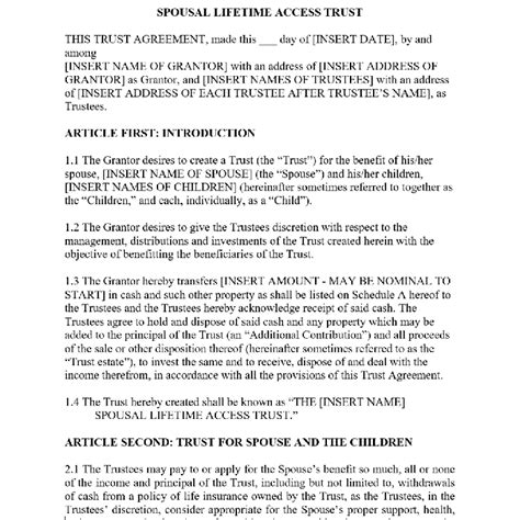 Spousal Lifetime Access Trust Form. For beneficiary spouse’s lifetime, he or she may receive trust income and principal restricted to ascertainable standard of health,. Web what is a spousal lifetime access trust (slat)?
