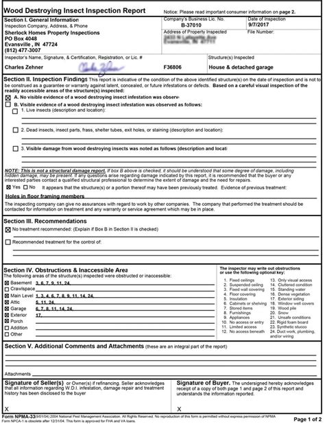 Va Termite Inspection Form Npma 33 Forms NjUxNA Resume Examples