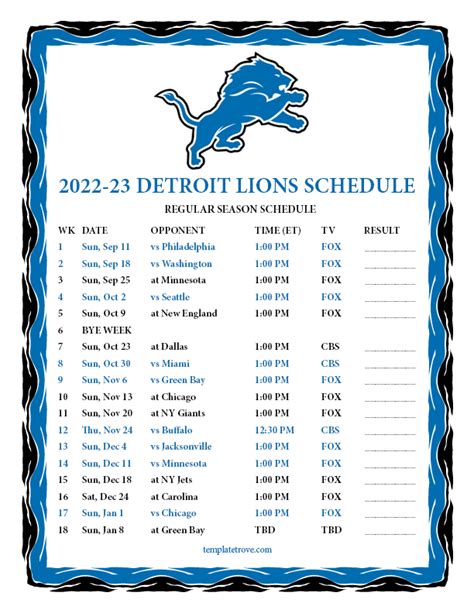 Lions Schedule Printable. Web after just one season, it is quite apparent that emerging defensive star aidan hutchinson is everything the lions. Web detroit lions 2022 schedule breakdown: