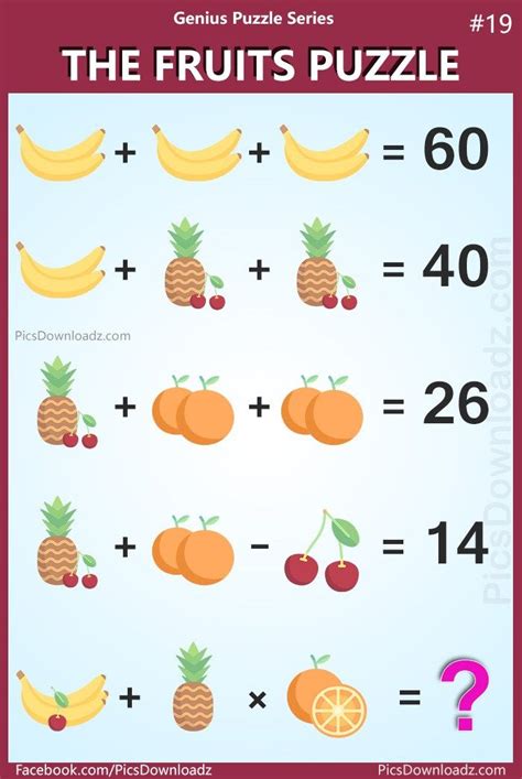 Take a piece of fruit from the apples and oranges crate. Peach + ananas + ananas = 20. Web #fruitmathpuzzle #mathchallengecan you solve this fruit math puzzle with an answer? You work at a fruit factory. Peach + peach + peach = 30. There are 3 crates in front of you. Web interactive algebraic systems with fruits. New comments cannot be posted and votes cannot be cast. Web a deceptively hard fruit math puzzle. Web crates of fruit puzzle the puzzle: