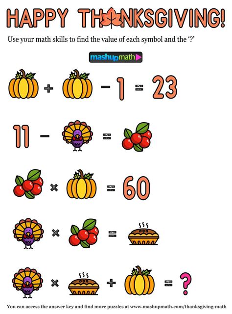 12 Thanksgiving Math Activities for Grades 18 — Mashup Math