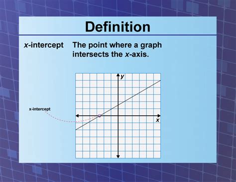 X Intercept Math Definition. To find these, find the x when y = 0.