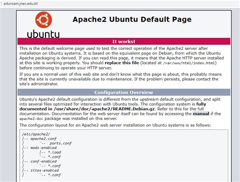 Apache2 Ubuntu Default Page It Works. Web the configuration layout for an apache2 web server installation on ubuntu systems is as follows: Web 90 i would like to change the default web page that shows up when i browse my site.