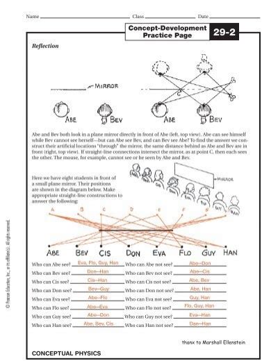 Concept Development Practice Page 29 2. Refl ection and refraction 129. Draw a ray beginning at the fi sh’s eye to show the line of sight of the fi sh when it looks upward at 50° to the normal.