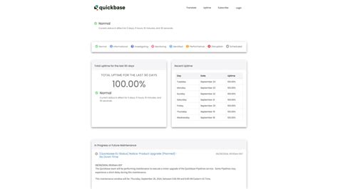 Quickbase Status Page. Status page provided by statuscast. Web status page for quickbase powered by statuscast translate uptime subscribe [quickbase us status] notice:.