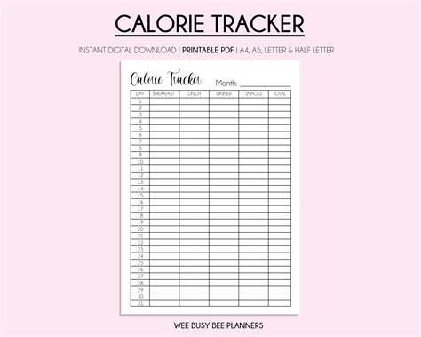 Printable Calorie Tracker. If unable to locate, check your spam folder. Use this printable food & fitness journal or.