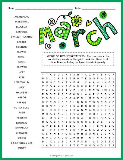 Web march 2022 calendar with federal holidays. March word search to download and print or play online. Web page 2 of 2: Web get your free march writing printable today to help your kindergarten student correctly practice writing the months of the year. Add your own words to customize or start creating from scratch. Patrick's day activity bundle of printable. See more ideas about reading club, printable puzzles, printable puzzles. Web contains 15 march themed puzzles for older kids, teens and adults.no prep, ready to print wordsearch puzzles. When is a good time to use. Web the free printable word game makes a great addition throughout the month of march.