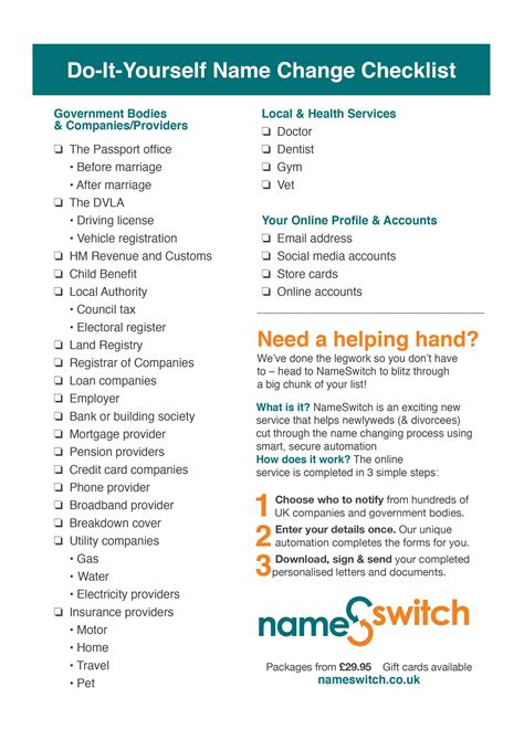 Web name change checklist first things first: Web name change checklist. Web 24 tasks by jake r brady on dec 28, 2011 new business name choose a new business name. Identify change after marriage on your social technical card, driver's license, passport,. Web head straight to magnitude printable name changing checklist, or jump to a different section below: If you're using the computer please note that. Web printable name change checklist the entries can be done on your computer or by hand. Legal, business, tax as well as other electronic documents need higher of protection and. Web for the detailed step by step guide about changing your name after marriage and the free printable version of this checklist,. Web this article will furnish you with a name transform checklist you can benefit toward make sure him do changed your name.