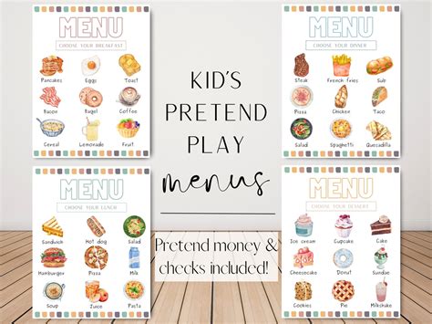 Pretend Play Menus Kids Play Menus Kids Kitchen Play Menus Etsy