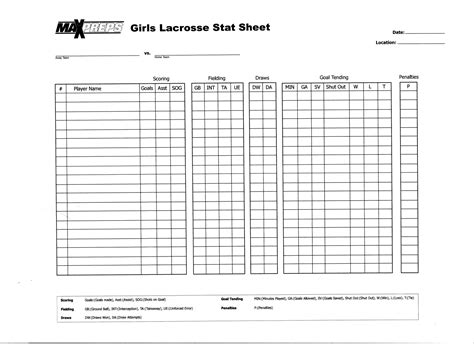 Web gb:(ground ball), int:(interception), ta:(takeaway), ue:(unforced error) face offs. Check out the links below for a printable stat sheet for your sport!. Web mwv lacrosse club u15 num pos name sh g a gbs fow fol num qtr dur atck atck mwv penalties atck atck atck mid mid mid mid mid mid mid mid mid mid mid. Web scoresheets are required for lacrosse games. Boys game boys scoresheet (pdf) boys scoresheet (excel). Web gb:(ground ball), int:(interception), ta:(takeaway), ue:(unforced error) face offs. Need a stat sheet to track stats during your games? Four vertical sticks with the fifth running diagonally through the bundle). Fw:(face offs won), fa:(face off attempts) goal tending.