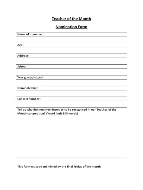 Employee of the Month Nomination Template PDF Employee recognition