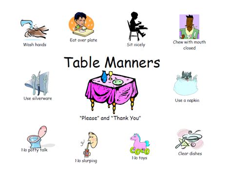 Printable Table Manners. Web chewing with your mouth closed and not talking when your mouth is full are two cardinal rules of good table. Web chew with your mouth closed.