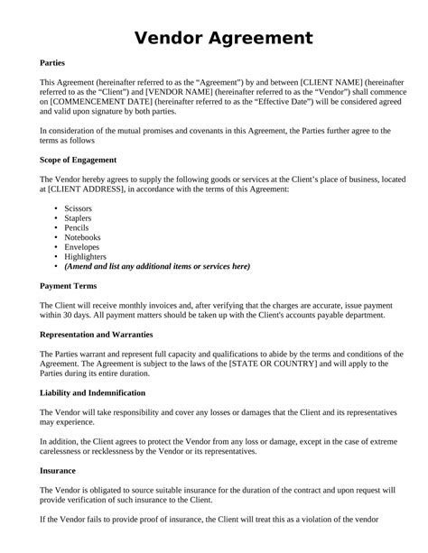 Web check out our vendor contract selection for the very best in unique or custom, handmade pieces from our templates shops. Web this agreement sets forth the terms and conditions whereby vendor will be permitted to sell certain goods at the event, subject. Download printable contract (.doc format) formatted and. Web the templates can be quickly downloaded, customised or edited, and even printed or emailed. Web keep your vendor partnerships professional with our free, printable vendor contract template. We've taken the hassle out of putting together new vendor agreements with a free fillable template. Web vendor contract create your own printable contract — free! Web a vendor contract is a contract between two parties concerning the exchange of goods and services for compensation, monetary. Web download template vendor agreement this vendor agreement is made effective as of [insert date], by and between [insert name. You can also visit sales. Web vendor agreement agreement made this ____ day of ____________________, 20__ , by and between pace university, one pace.