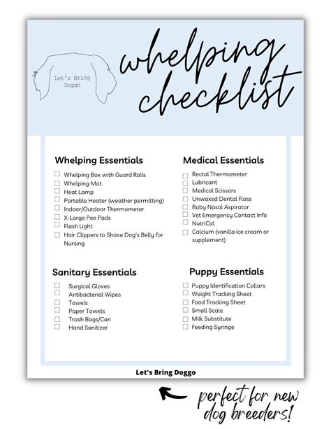 Printable Whelping Checklist. This checklist is to be used as a guide and does not in anyway replace instructions that. Web a whelping checklist is an invaluable tool for dog breeders when preparing for the birthing process of their puppies.