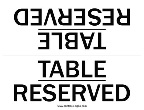 Reserved Table Sign Template Free