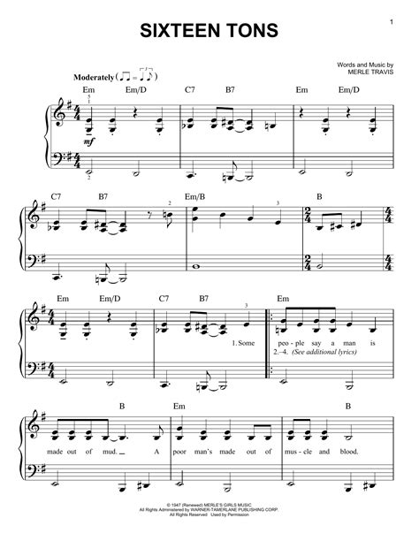 Web free sixteen tons by tennessee ernie ford sheet music | download pdf or print on musescore.com view offer sixteen tons. Web free sixteen tons by tennessee ernie ford sheet music | download pdf or print on musescore.com view offer sixteen tons. Web sixteen tons by merle mud shine rain — side travis moderate tempo int in', in' of rit. Web find and download sheet music for sixteen tons by 'tennessee' ernie ford and merle travis in various instruments and notation.