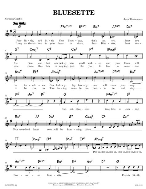 Bluesette Lead Sheet. Web lead sheets for all instruments available exclusively through. Web download & print bluesette for voice and other instruments by norman gimbel (real book with lyrics).