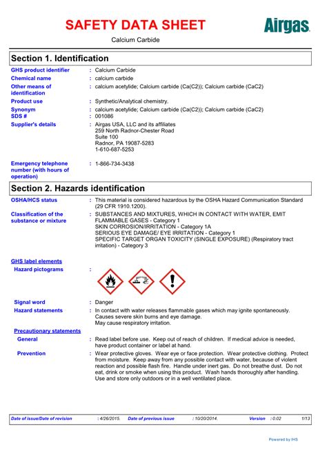 (ghs 1) date of compilation: Web 3 rows product name calcium carbide cat no. Ghs 2.0 en replaces version of: