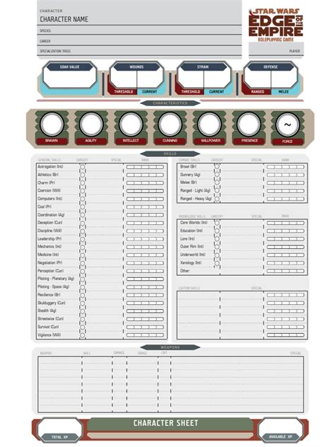 Edge Of Empire Character Sheet. Edge of the empire char sheet. Generic star wars char sheet.