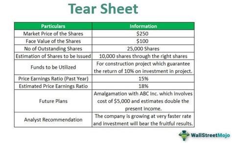 Tear Sheet Example. The tear sheet typically includes key fundamental information and a graph. We’ve created an example tear.