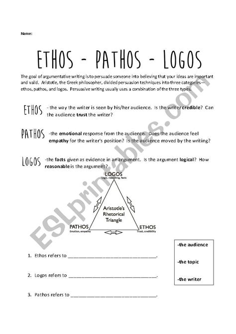 Introduction To Ethos Pathos And Logos Worksheet Answers —