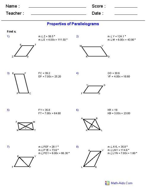 Properties Of Parallelograms Worksheet Answers With Work inspireya