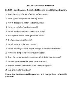 Testable Questions Worksheet worksheet